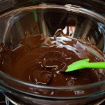 Rozpuszczoną, delikatnie przestygniętą czekoladę, wylewamy na deskę (najlepiej szklaną) i wstawiamy do lodówki.