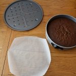 Nasze bezy mają mieć ten sam kształt co biszkopt. W tym celu przygotowujemy dwa osobne kawałki papieru do pieczenia, na których odrysowujemy kształt od tortownicy, w której piekliśmy biszkopt.