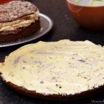 Drugą część biszkoptu czekoladowego smarujemy pozostałym kremem z żółtek…