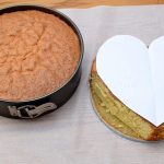 Biszkoptową masę przekładamy do wyłożonej papierem do pieczenia tortownicy [średnica max. 23cm].