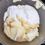 Wymieszaną z proszkiem do pieczenia mąkę przesiewamy.