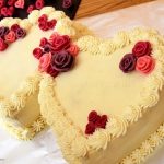 Pyszny Tort Rocznicowy – w kształcie dwóch, przytulonych do siebie serduszek, z dodatkiem cukrowych róż w ciepłych kolorach, jest idealnym tortem do świętowania ślubów i ich rocznic. Jego romantyczny wygląd to tylko jedna z zalet, które nadają mu uroczysty charakter…biszkopt został przełożny kremem, zrobionym na bazie śmietanki i mascarpone, z dość sporym dodatkiem likieru (tym samym kremem tort został ozdobiony), co sprawia, że tort ma wyjątkowo pyszny, charakterystyczny smak, który pamięta się długo po spróbowaniu! Rozmiar to kolejny atut przemawiający za tym, żeby to właśnie taki tort pojawił się na przyjęciu z większą ilością gości. Ciekawe, czy wśród nich znajdziecie chociaż jedną osobę, której ten tort by nie smakował? Mi się to nie udało! 🙂